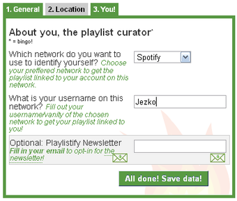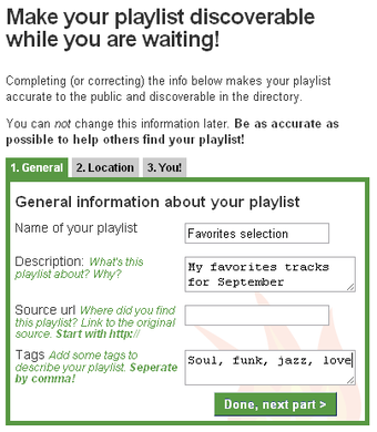 Pour chaque type de playlist, Playlistify donne des conseils sur la marche à suivre et propose des options différentes. Depuis Last.fm par exemple, la playlist générée peut dépendre du genre musical choisi, des préférences d'un utilisateur ou d'un groupe. Pendant la création de la playlist, il faut remplir des informations complémentaires avec des tags, une description et des informations géographiques pour faciliter sa découverte par les autres utilisateurs.